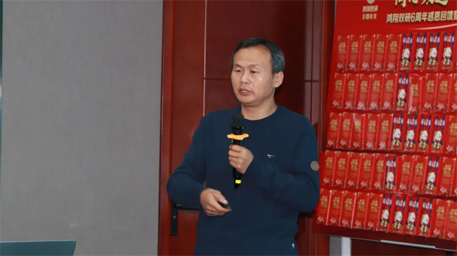 首先,由河南慧博科瑞迪农业科技有限公司董事长赵岩涛先生为大会致开幕欢迎词。赵总对会议的胜利召开表示热烈祝贺,对长期以来支持鸿翔双研事业发展的各位经销商伙伴表示衷心感谢,对鸿翔双研未来发展寄以美好祝愿!