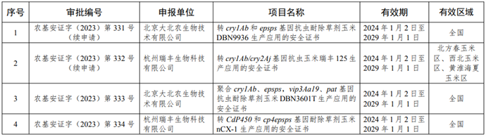 总体来看,从2019年到2023年4年时间里,杭州瑞丰生物科技有限公司每年都有获农业转基因生物安全证书(生产应用);北京大北农生物技术有限公司除了2022年未获农业转基因生物安全证书(生产应用)之外,其余3年均有获得。