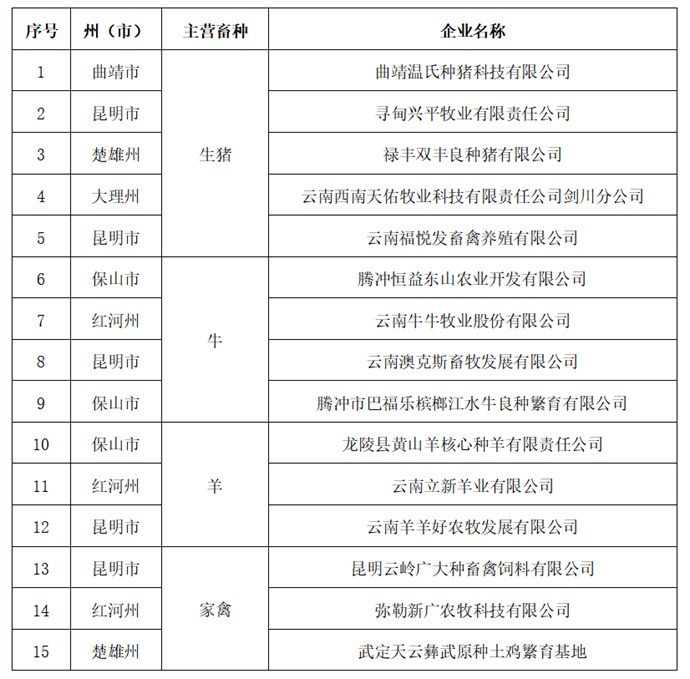 省级畜禽种业阵型企业拟推荐名单