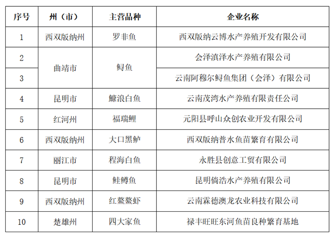 省级水产种业阵型企业拟推荐名单