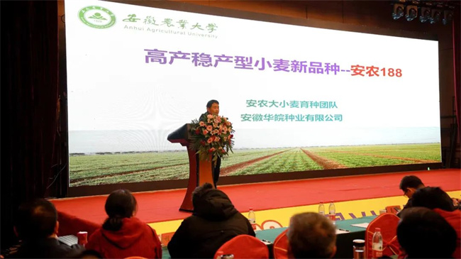 会议邀请了安徽农业大学隆平安农188主要育种人卢杰教授就隆平安农188田间地头优异表现、品种考察心得、生产栽培技术、品种特性作详实讲解。数据详实可靠,内容充实丰富,现场嘉宾收获满满。