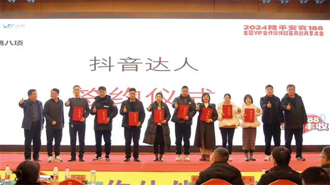 随后,公司新媒事业部吕书鹏经理发布了隆平华皖抖音达人招募令,并现场与各地抖音达人网红举行签约仪式,此次招募令的发布,吸引了众多优秀达人的加入,助力公司品牌推广和业务拓展。