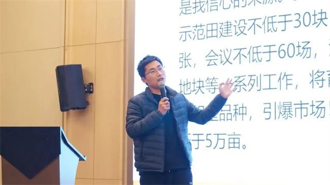 庆鸿事业部经理张长坤就育玉315的示范体系建设做了详尽的讲解,分析了一分地测产的实操方法,指出一分地测产可以让农户实实在在的看到育玉315的高产效果,也可以进一步提高市场占有率。