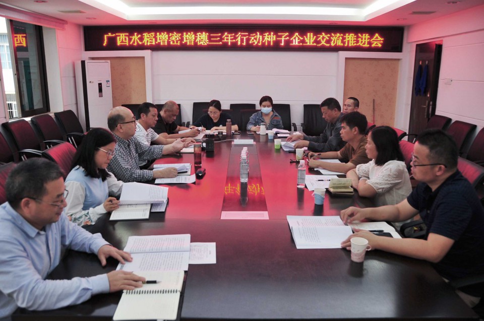 祁广军向参会企业提出希望:一是要发挥骨干企业带动作用,主动与当地农业部门联系参与广西水稻增密增穗行动;二是要提前谋划种子生产供应,保障增密增穗行动水稻种子供应;三是要结合品种特性做好水稻增密增穗技术宣传,做出通俗易懂的小册子、小视频,让农民“一看就懂,一学就会,一用就行”。