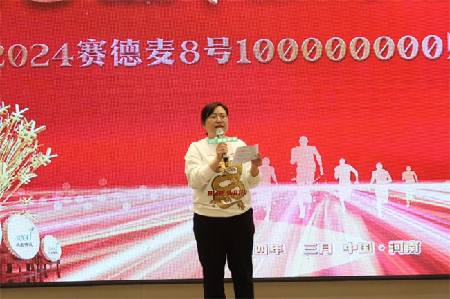 赛德种业营销总监张春龙公布了2024年赛德麦8号营销战略部署和工作落实安排措施;新媒体运营部经理任颖分享了新媒体运营成果以及后续宣传工作规划。