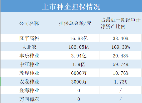 除了隆平高科外,大北农、丰乐种业、中江种业等不少种企,也为其子公司提供了不同程度的担保。