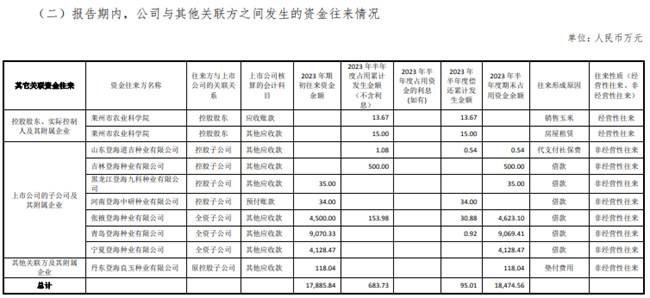 据登海种业2023年8月发布的独立意见披露,公司在报告期内与其控股股东及其他关联方之间存在资金往来,具体情况如下: