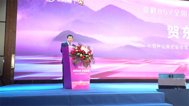 27载岁月峥嵘,27年砥砺奋进,三年华丽蜕变。一路走来,向新而行,兆育集团深入贯彻创新发展理念,主动融入种业新发展格局,从起步到领跑,从突破到跨越。正如兆育种业集团副总裁、总农艺师贺东刚研究员开幕式致辞所述:栉风沐雨27载,蠡玉人科研立企,默默耕耘,力行不怠。作为国家级育繁推一体化企业,兆育种业集团一直致力于品种培育与营销推广,公司共选育审定玉米品种156个,2个品种单年推广面积超千万亩,6个品种单年推广面积超过500万亩。获得和申请植物新品种权近300个。2023年,兆育种业集团不断加强科企合作,与北京市农林科学院种业大家赵久然老师签订战略合作协议,引进“京科”系玉米新品种。新时代征程中,蠡玉人勇于创新,敢于变革,2024年引入大北农集团创种科技战略入股,并与大北农生物科技建立全面转基因合作,三年聚力,现已开启全新发展篇章。同时,希望各位经销商伙伴,以千万亩潜力大单品“京科”系玉米品种发布会为契机,通过思想的碰撞,智慧的交流,携手同行,筑梦农科,共创辉煌!
