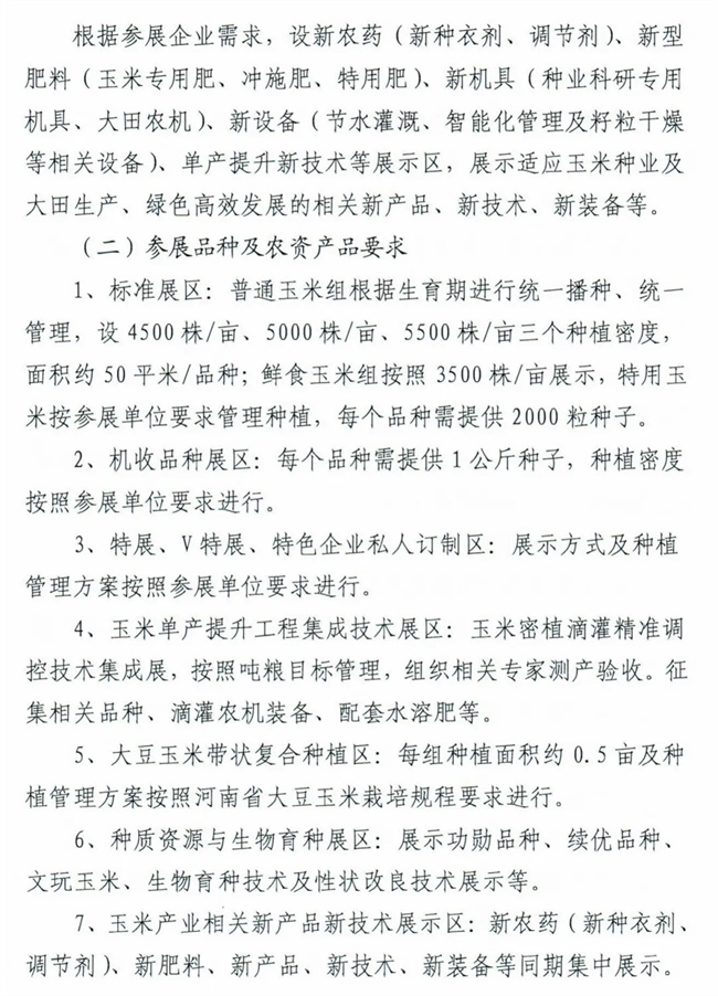 2、机收品种展区:每个品种需提供1公斤种子,种植密度按照参展单位要求进行。