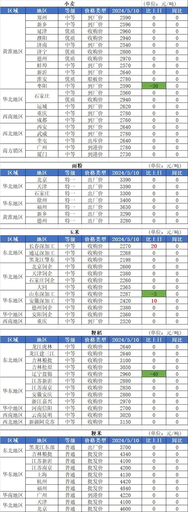 1、近期湖北地区新季小麦零星上市,部分用粮企业已开始收购新季小麦,其中荆州好好吃米业收本地二等新麦报价1.22元/斤、五得利东明公司新麦收购价格为1.24元/斤、五得利周口公司新麦收购基础价格为1.26元/斤。