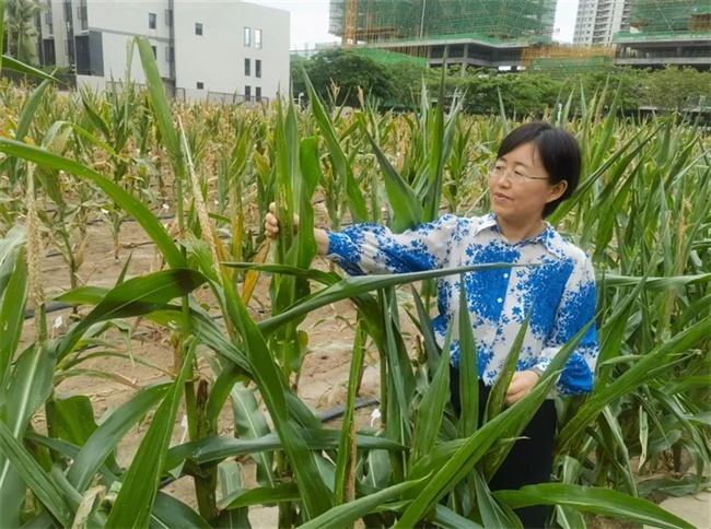 4月24日,中国农业科学院国家南繁研究院试验田内,一排排玉米实验材料迎阳生长。抚摸着其中一株玉米的茎杆,中国农业科学院生物技术研究所研究员徐妙云道出了其中的特色:“这株玉米株高仅有1.5米,比传统玉米矮不少,它的茎秆也更坚硬,地下的冠根抓地的夹角也比普通玉米更大,这些都有助于它抗倒伏,更适合密植、抗逆的市场需求。”