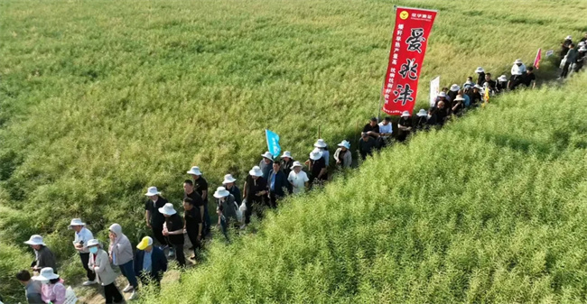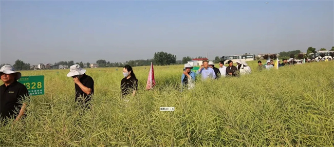 会前,与会人员对荣华公司种植展示的油菜品种展示田进行了观摩。“咱们每年都会组织大大小小好多场观摩会,主要目的就是把公司的油菜品种和高产栽培技术向经销商和种植大户宣传推广,为促进我国油菜产业实现高质量发展和农民增收贡献我们的力量。”陕西荣华农业科技有限公司总经理孙志刚说。