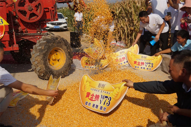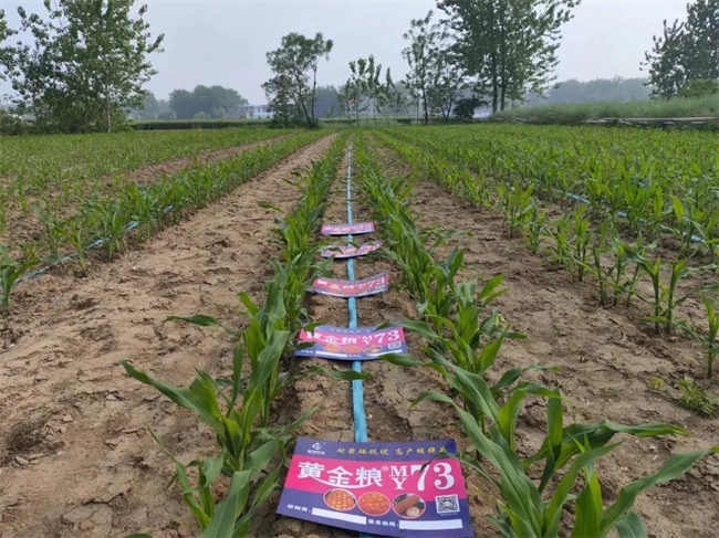 黄金粮MY73是河南豫玉种业股份有限公司育成的耐密型玉米品种。2021年起,黄金粮MY73突然火爆出圈,名声鹤起,销量大增,产品一度脱销,引发行业高度关注。究其火爆原因,行业多位专业人士普遍认为,黄金粮MY73高度集合了天时、地利和人和助其一飞冲天。近年来,黄淮海气候复杂多变,高温干旱、阴雨寡照和台风的侵袭,青枯、南方锈病、穗腐病的重发频发,在这种复杂气候条件下,玉米品种能否夺得高产正经受着严峻考验。也正是这种特殊气候条件和黄金粮MY73本身的耐密、抗倒、抗青枯和高产优质等优良特性互作,给农户带来了极大的舒适种植体验,经销商的高度认可,同时也成就了黄金粮MY73的天时和地利。关于人和,那就是豫玉种业先进的营销理念和超前的营销技巧,种植户乐意种,经销商有信心、有干劲,共同助推黄金粮MY73事业高质量发展。