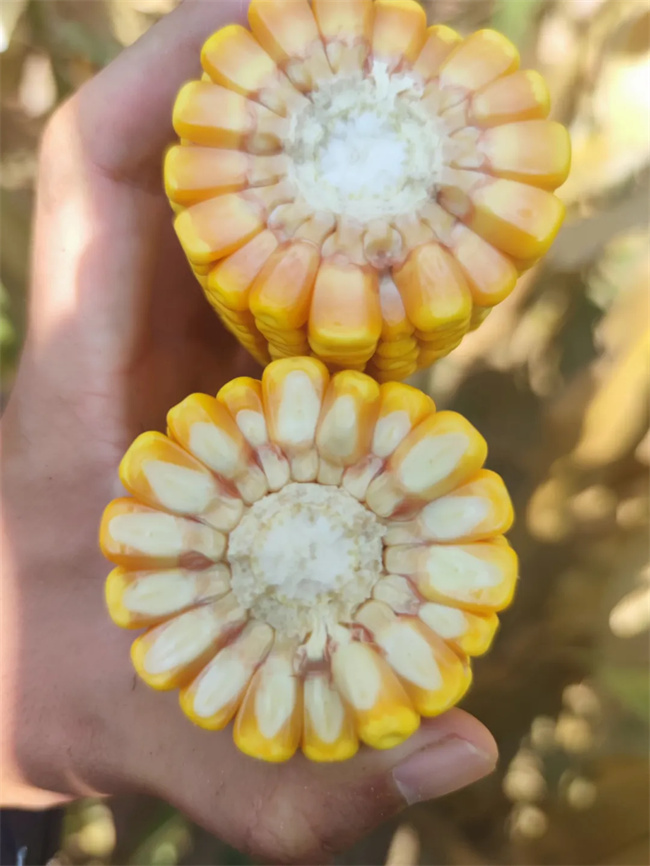 ④耐密性好,密度4500—5000株/亩,高水肥地块5500株/亩,果穗均匀一致,出籽率高,高产稳产。