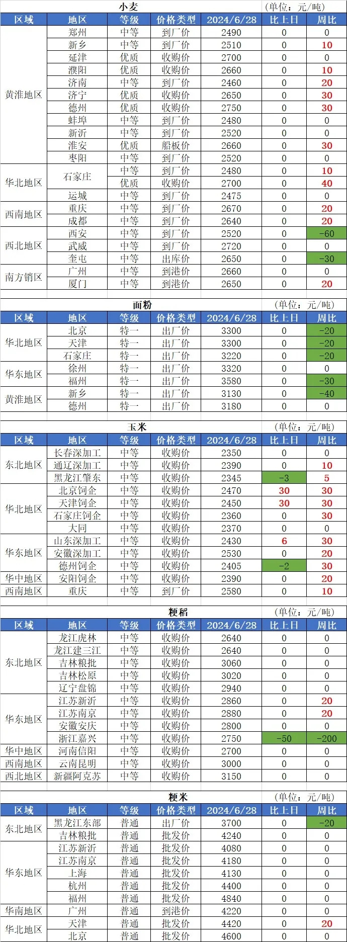 1、当前优质品种小麦报价相对坚挺,河南“新麦45”“谷神19”等优质品种进厂报价在1.34元/斤左右;山东菏泽“新麦26”进厂报价在1.38元/斤左右,“济南17”报价1.35元/斤左右,“伟隆169”报价1.29元/斤左右,“西农979”报价1.27元/斤左右。