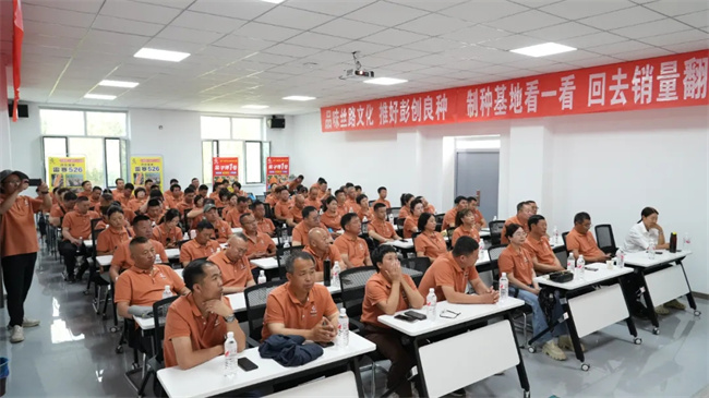室内会议,豫玉种业总经理彭强首先致欢迎词。他说,感谢多年来各位伙伴对公司的信任与支持。并表示,下一步,公司将继续在品种创新、渠道建设、市场宣传、技术服务和扶持政策等方面全面发力,携手大家,共同做大做强“金子弹1号”、“雷赛526”市场,为实现宏伟目标努力奋进。