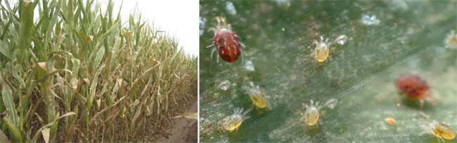 1)蚜虫危害: 在玉米开花授粉阶段,蚜虫的为害使玉米雄花败坏、授粉不良,形成不孕果穂;同时蚜虫刺吸玉米汁液使玉米早衰甚至枯死,排泄的蜜露粘着在玉米叶片上影响光合作用,造成产量下降。蚜虫还是玉米病毒病害的主要传播者。越旱发生越重!