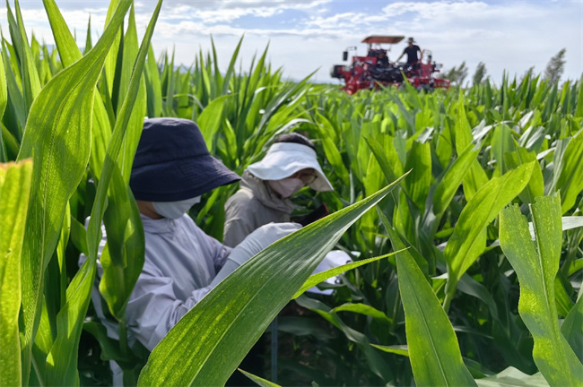 为进一步加快机具的推广应用,在制种玉米去雄作业的黄金期, 省农业机械化技术推广总站专家组深入张掖、酒泉4县区5应用场景开展轻简型制种玉米去雄机的田间试验验证和示范推广,测定了试验地情况、种植模式、植株生长情况等,对一体化试点投放的轻简型制种玉米去雄机的去雄率、伤株率、作业速度、作业小时生产率和油耗等指标开展了作业性能试验测试,完成了多场景下去雄作业性能试验验证,并开展机械去雄和人工去雄对比试验,为轻简型玉米去雄机在我省的熟化与推广收集第一手试验数据。
