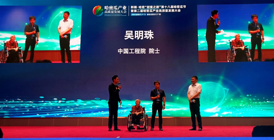 中国工程院院士吴明珠(左二)受邀出席哈密瓜产业高质量发展大会。