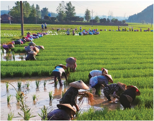 制种基地,村民正在抢抓农时移栽制种母本。近年来,靖州县立足党建引领,通过一系列政策,鼓励支持农户参与杂交水稻制种产业。同时采取“