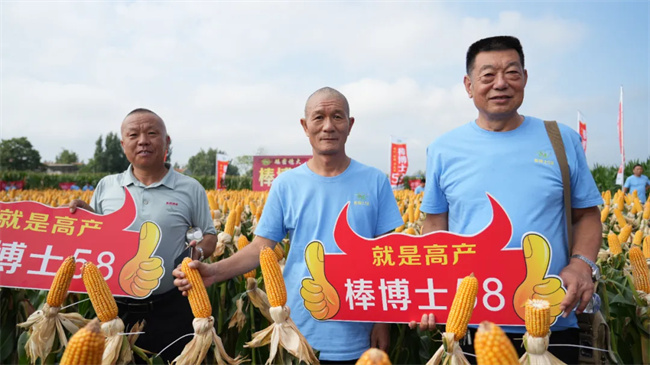 会前,参会人员观摩了棒博士58春播展示地块,大家对授粉期遭遇高温干旱,灌浆中后期遭遇连阴雨,棒博士58表现出优良的结实性一如既往地好给予一致好评,对其高产充满期待。