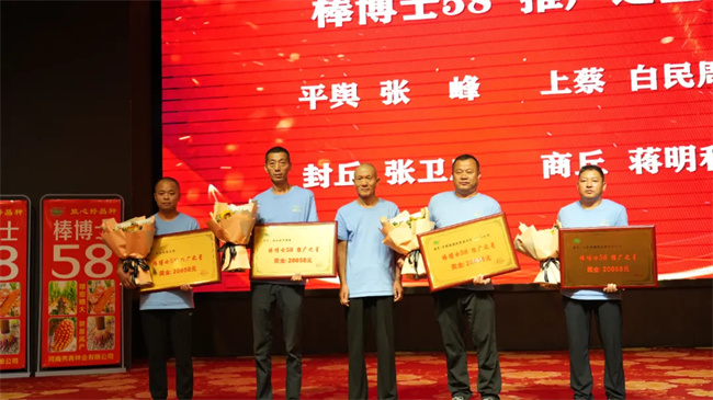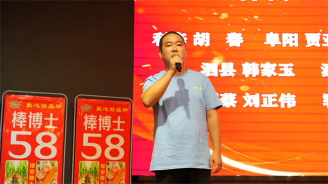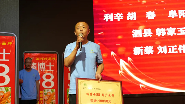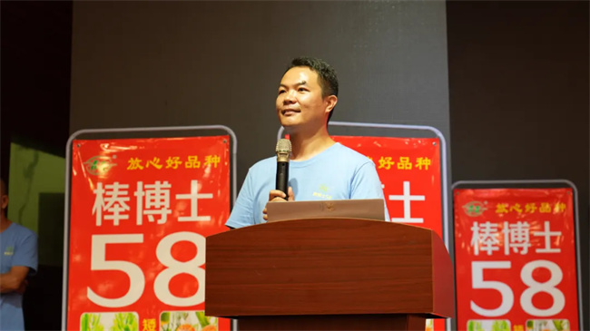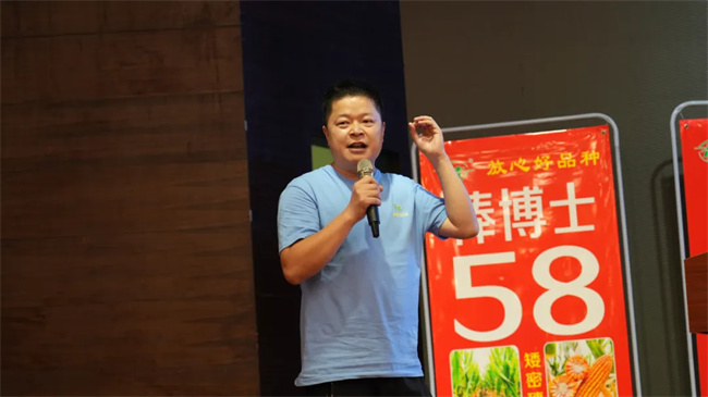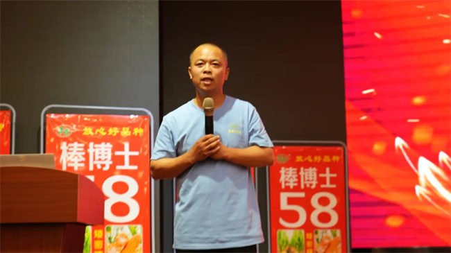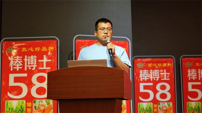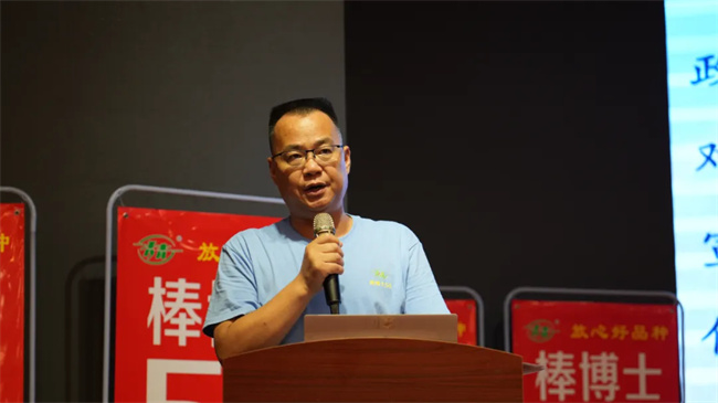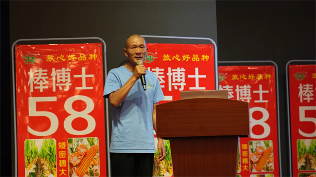 会上,棒博士系列品种育种人王永普在致辞中感谢各位伙伴多年来的鼎力支持和精诚合作。他说,公司育种团队经过30多年的育种经验沉淀和积累,以棒博士58为代表的优势品种横空出世,同时在继棒博士58之后,公司一批抗锈、抗抗茎腐病更强、根系更加发达、籽粒更深更大、丰产性和稳产性更好的玉米新品种也将精彩亮相,开创“矮密穗大”玉米品种新时代。同时,他表示,2024—2025年度,公司将拿出980万元奖励资金,激励更多的伙伴业绩再迈一大步,早日实现棒博士58千万亩目标任务,也希望各位伙伴以此次活动为契机,坚定信念、齐心协力、把握机遇,再创佳绩!