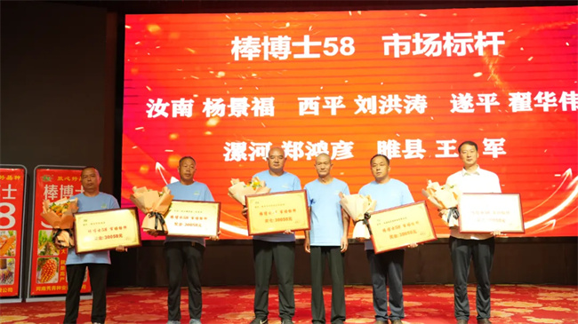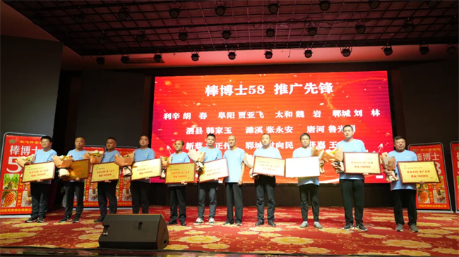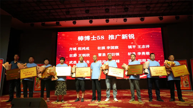 会议现场,公司共设推广新锐、推广先锋、推广之星、市场标杆和王者之师五大奖项,对在棒博士58推广过程中表现突出、遵守市场管理规定、宣传工作做得好、宣传热情度高、积极配合公司各项工作、具有奉献精神和不怕吃亏的先进工作者给予奖励。