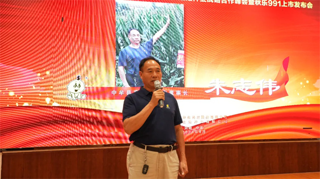 会上,秋乐种业董事长侯传伟研究员在致辞中指出,作为全国首批育繁推一体化种子企业和全国明星企业,多年来,公司始终秉承科技创新为本,良种培育为先的发展理念,选育高产、高效和抗逆强的品种为基本要求,致力于为农业现代化发展提供坚实的支撑。同时,他表示,此次发布的秋乐991,是公司历经多年选育的优良品种,不仅符合市场需求,更是在上市之初就赢得经销商广泛关注和高度认可。并希望各位合作伙伴以此次活动为契机,加大优良品种推广力度,为我国粮食安全做出新贡献!