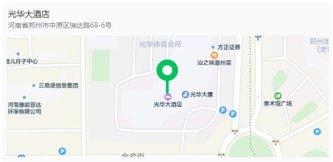 会议报到地址:光华大酒店(郑州市高新区瑞达路与合欢街交叉口,附定位图)