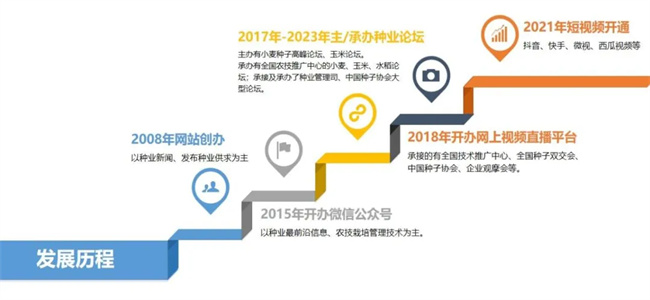 《种业商务网》自2008年开通已来,以独特新闻报道方式及快速的实时更新,倍受种业企业、经销商及种粮大户的广泛关注,目前各平台粉丝总计已达300余万。2017年-2024年,先后承接了农业农村部种业管理司、农业农村部种植业管理司、全国农技推广中心、中国种子协会、各省农业农村厅等几十场大型会议的报道宣传及拍摄制作、直播活动。经过近几年的快速发展,已形成种业商务网官网、微信订阅号、今日头条号、网易号等文字平台,种业商务网直播、抖音、快手、微信视频号等视频平台,全方位、立体化的运营模式,在行业内拥有良好的口碑与影响力。