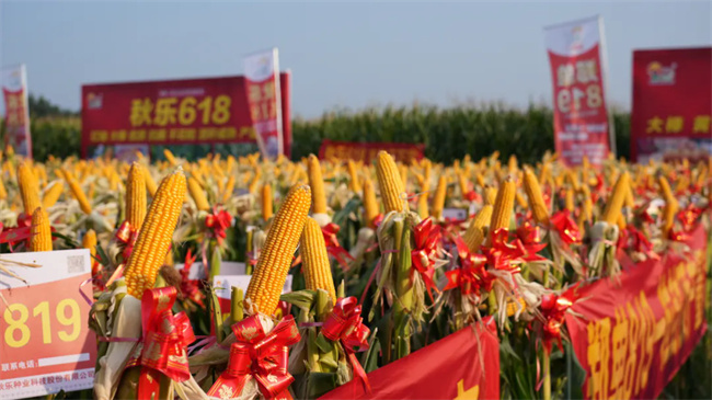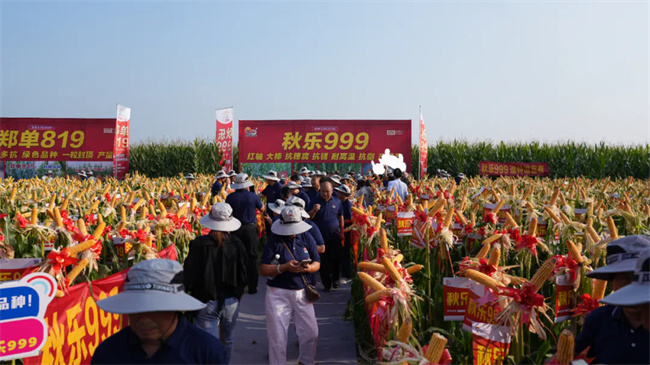 近年来,秋乐种业紧紧围绕市场需求,农业生产需要,加大研发投入,加速新品种的培育速度,秋乐999、秋乐991等一批优异玉米品种相继亮相市场,并以燎原之势,勇立潮头!观摩现场,参会嘉宾除了对会议展示主角品种秋乐999的抗青枯、耐高温结实,棒棒封顶给予高度评价外,也对观摩田展示的秋乐618、郑单819和开玉6号给予一致好评。