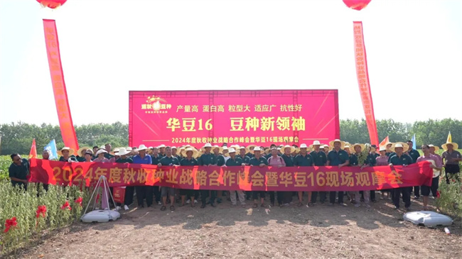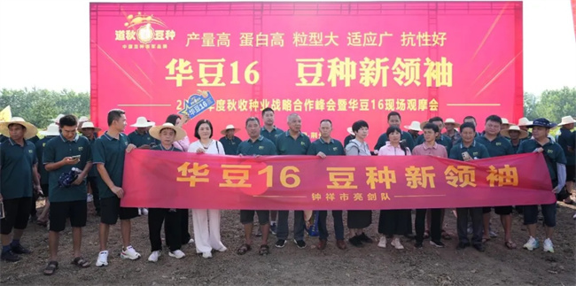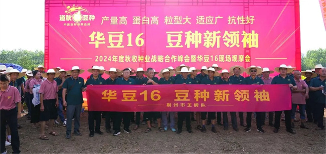 8月24日,2024年度秋收种业战略合作峰会暨华豆16现场观摩会在湖北荆州市成功举办。来自湖北省、湖南省、安徽省和江西省的经销商、零售商及种植大户参加会议,共同见证高蛋白、高产量和强抗倒华豆16的综合优势,共商华豆16创新发展大计,坚定聚力同行、再创辉煌信心!