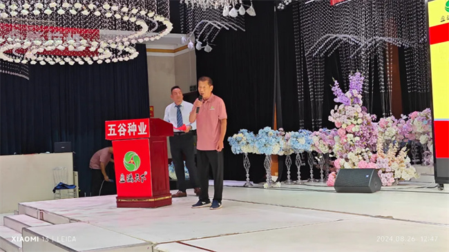 河南五谷种业营销总监袁启涛首先分析了当前种业现状及发展趋势,介绍了公司科研进展及发展方向,针对种业发展形势,分享了公司持续依托品种,聚焦重点,优化布局,与各位合作伙伴携手同创,共赢未来!