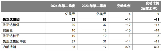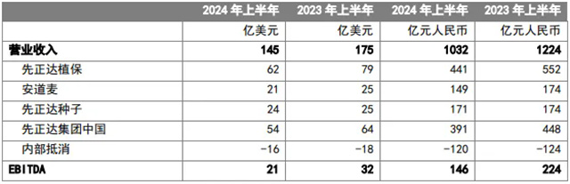 2024 年上半年,先正达种子营业收入为 24 亿美元,同比下降 4%。