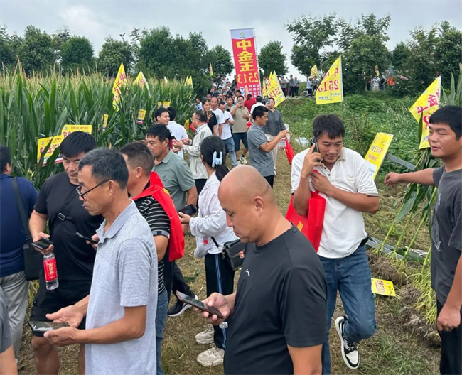 此次会议邀请皖北+豫东区域350位零售商参加,共同观摩了受水淹中金玉2513夏播地块,共同见证了中金玉2513在非常特殊年份下所展现出的品种综合优势。观摩现场,参会经销商和零售商结合近年来推广体验,分享和总结了中金玉2513抗逆能力强、综合抗性好、稳定性好、安全性好等突出卖点、亮点。