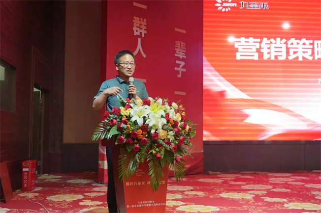 河南九圣禾新科种业玉米销售团队负责人庞明杰做营销策略与销售政策分享报告。报告中,他首先分析了黄淮海玉米种业市场现状,分享了大灾之年如何选择品种策略,介绍了公司应对市场困局,实现破局的营销策略。他表示,种业人用积极的态度应对危机,从市场角度选择品种,用实干的精神去干一番事业,脱困局、谋变局,识破局、跟时局,做正确选择,同努力,共奋斗,实现新跨越!