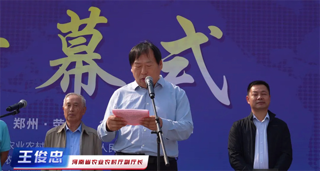 河南省农业农村厅王俊忠副厅长在讲话中指出,在新时代新征程上,河南正加快实施种业振兴行动,加速构建以中原农谷为核心的全种业、全链条的科技创新生态圈,聚力开展育种核心攻关,主要农作物新品种选育成果丰硕。十四五期间,河南育成国审新品种568个,省审品种911个。目前,国审郑麦379、郑麦1860、百农4199等小麦品种,中科玉505、秋乐368等玉米品种,先后被农业农村部列入农业生产主导品种,为扛稳粮食安全重任提供了有力支撑。王俊忠强调,种业振兴,安全为要。开展主要农作物新品种展示示范,是验证审定品种的适应性、稳定性、安全性的重要途径,是集中展示育种科技成果,有效促进新品种快速推广的重要载体,是示范引导种植农户和经营主体科学选种的重要手段。同时,王俊忠表示,希望各位领导、各位专家、各位代表,一如既往的关心支持河南种业高质量发展,助推河南省加快种业强省建设,共同为保证国家粮食安全做出种业领域的更大贡献。最后,王俊忠宣布2024年第十届黄淮海玉米新品种地展博览会开幕。