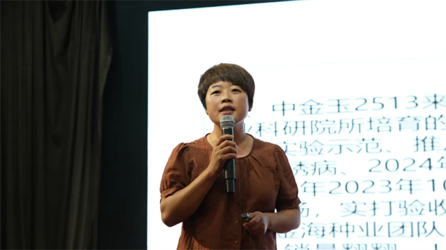 河南金海种业山东省张治明总经理总结了中金玉2513/4688品种特性:抗倒能力强、综合抗性好、抗逆性好、广适、种植密度弹性大及高产稳产优势,分享了中金玉2513/4688近年来在各地优秀表现,发布了2024—2025年度赋能扶持政策,并就下一步市场推广具体工作做周密安排。