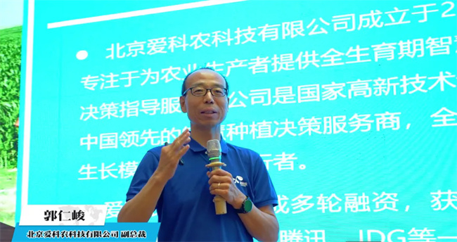 北京爱科农科技有限公司副总裁郭仁峻及杨晓勇出席了会议,郭总做了专题报告——“爱科农智慧农业创新与实践”。北京爱科农依托强大的研发实力和先进的作物-土壤-大气连续体模型,构建了强大的作物智慧种植决策系统。该系统可因地制宜地实现良种和良法有机结合、协助种业公司、经销商和种植者充分挖掘新品种的生产潜力、展示新品种的价值、显著提高农业种植效益。爱科农与纵横种业的携手合作,共同打造高标准示范田,这一举措无疑将优良品种与新科技紧密结合,为农业生产注入了新的活力。通过高标准示范田的展示,农民可以直观地看到优良品种与先进科技结合所带来的增产增收效果,也将极大地促进纵横种业品种的推广。