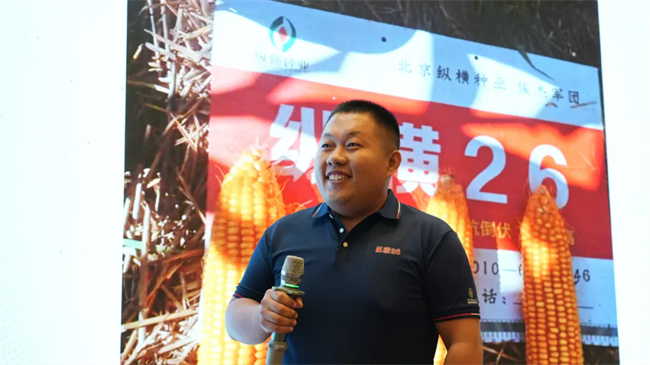 品种泛滥、产品过剩、厂家多、经营迷茫……种业转型期,种子经销商如何破局升级?选对品种和厂家是经销商成功的关键。会上,北京纵横种业黄淮海俊杰军团销售总监王俊杰结合种业发展实际,就什么是好品种、好厂家所应具备的特质向与会嘉宾进行全面分析。介绍了高产稳产、高抗倒伏、抗锈病、高温结实好和密度弹性大——纵横26的特点和优势,分享了农大628棒大、穗匀、抗锈、耐高温、结实好等高产、“颜值担当”的突出亮点和卖点。阐述了公司2024—2025年度聚焦产品优势区域、营销精耕细作、人财物聚焦的全方位支持营销策略。