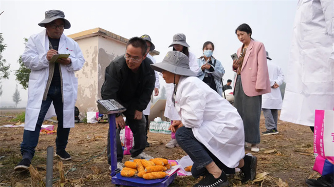 测产现场,专家组一致认为,黄淮海地区玉米生长环境复杂,高温干旱、阴雨寡照伴随着整个玉米生长季,生长期短,给玉米单产提升带来许多难题。合理密植是增产的重要途径,从近年来的全国各地大田生产来看,黄金粮MY73矮秆、耐密植、多抗、稳产、高产、优质的品种特性,连年获得大丰收,受到行业的普遍关注和市场高度认可。同时也希望豫玉种业继续加强良种+良法配套技术引导,充分挖掘优良品种价值,助力粮食单产提升和保障国家粮食安全做更大贡献!