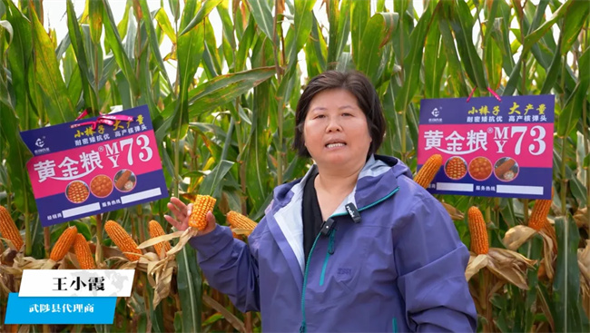 武陟(zhi)县种植大户杨金贵在接受采访时表示,黄金粮MY73结实封顶好,抗高密度种植增产效果明显,明年继续扩大种植面积;武陟县种植户王震表示,黄金粮MY73株高矮、穗位低,穗位以上旗叶上冲,通风透光好,抗病又抗倒;黄金粮MY73武陟县代理商王小霞在接受采访时介绍,MY73今年当地产量大部分在1700—1900斤,也有超过2000斤的,农户非常满意,截止10月9日测产,预订2024—2025年度种子量已超过10万亩!