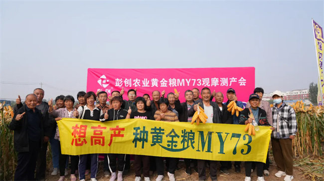 近年来,彭创农业坚持把助力单产提升作为MY73增量扩面的重点推广举措,根据MY73品种高耐密强抗倒特性,持续探索、试验符合地理、气候条件的生态区,通过品种品质提升、精量播种、合理增密等科学种植新技术、新模式,不断大面积提升玉米单产水平。