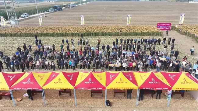 10月14日,黄金粮MY73观摩及实打验收测产会在德州市齐河县成功举办。活动旨在通过经销商、种植户对高产、耐密玉米品种MY73的观摩,精准的现场实打验收测产,对MY73在今年逆境条件下进行全面细致的生产评估,进一步见证黄金粮MY73强抗倒、综合抗性好、抗逆能力强及产量高的品种优势。