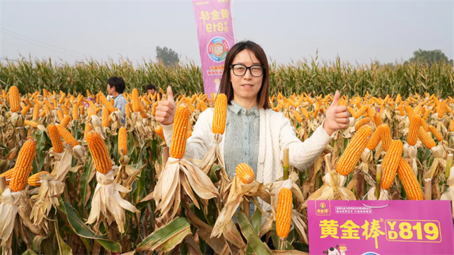 在YD819田间观摩现场,来自全国各地的优秀经销商代表仔细查看品种的结实性,检验品种的抗倒能力,并见证了品种的耐密性。他们对黄金棒YD819的田间表现赞不绝口,纷纷表示该品种在抗性、产量等方面都具有极高的推广价值。他们一致认为,黄金棒YD819不仅穗粒饱满、抗病抗倒、株型紧凑,而且结实性好,亩产量高,是个稳产高产的品种。