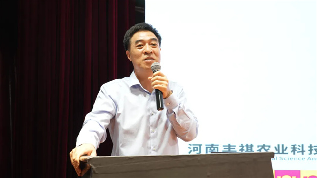 河南丰祺农业科技有限公司总经理谢玉迁以“同心筑梦,紧抓机遇,打造黄金棒YD819全国第一大单品。”的主题分享。他主要从优秀文化、先进经营理念、团队建设、营销渠道、科技示范田打造、服务体系、市场管理、新媒体宣传等八方面介绍了YD819营销规划,以期携手各合作伙伴早日实现大品种目标。