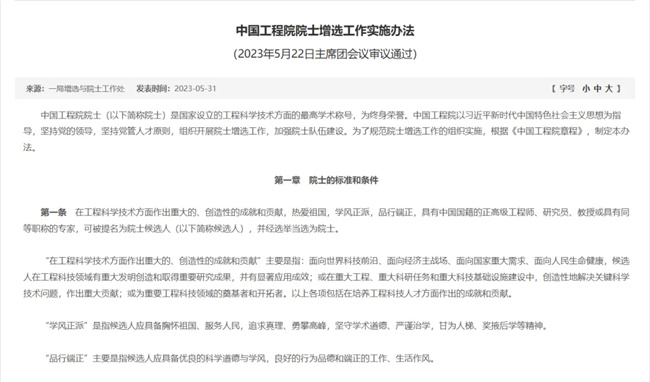 随着2025年两院院士增选储备候选人的出炉,哪些专家能够入选初步人选名单并成功评为院士非常值得关注。但在后续结果公示之前,我们可以先看一下“中国工程院院士增选工作实施办法”。