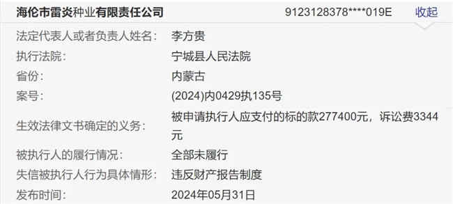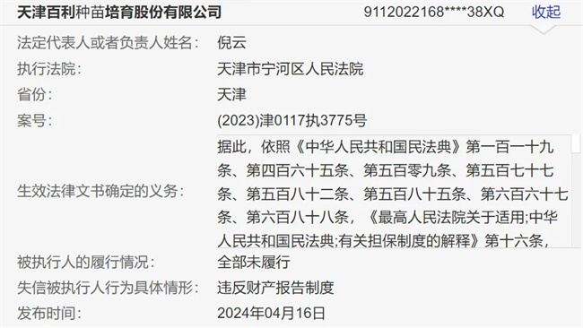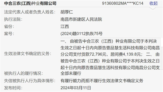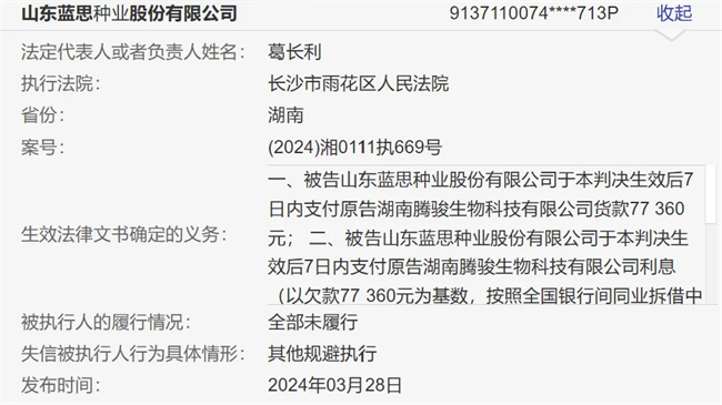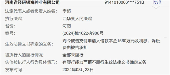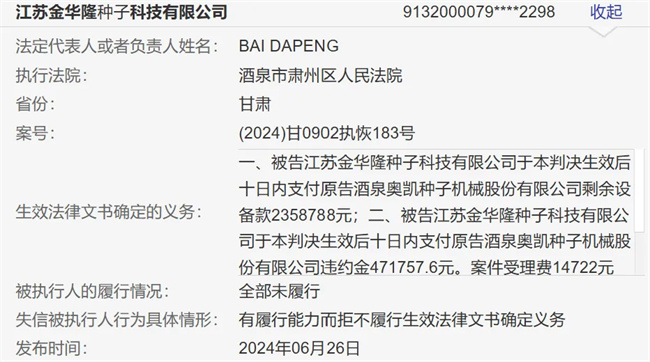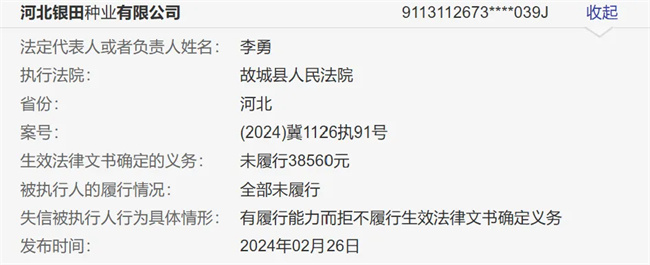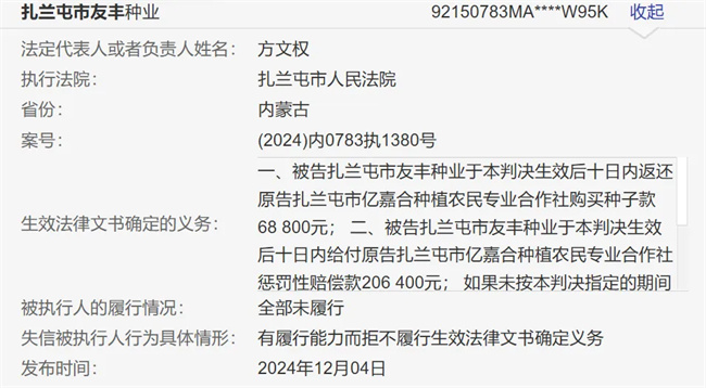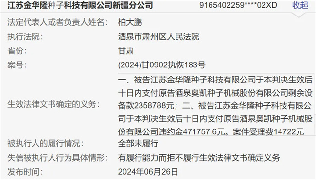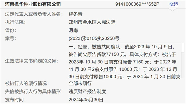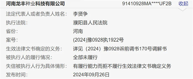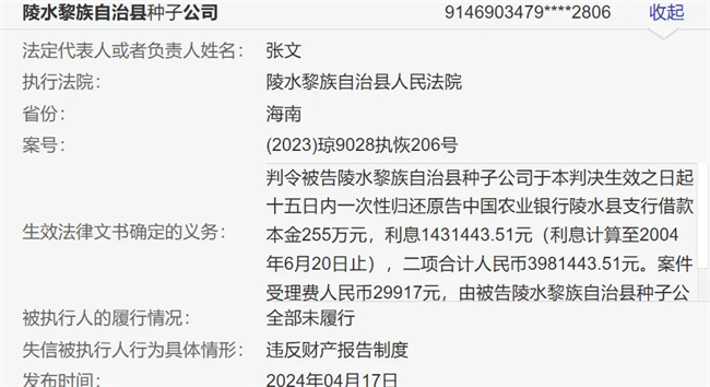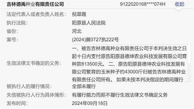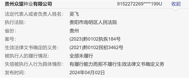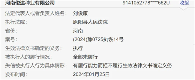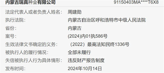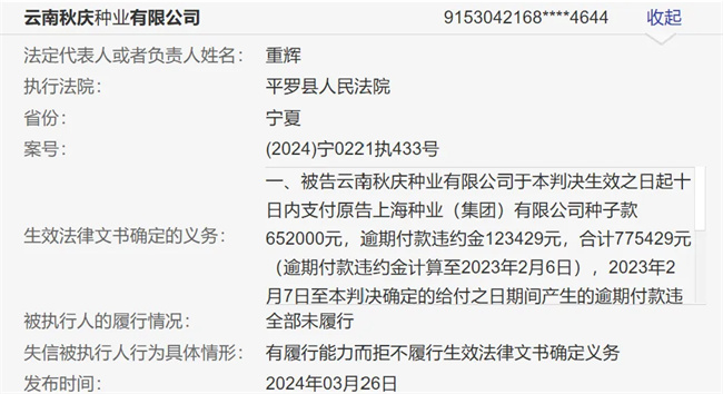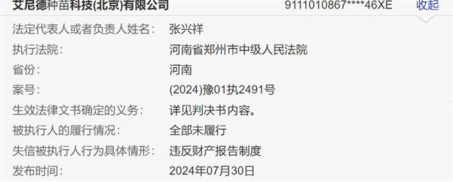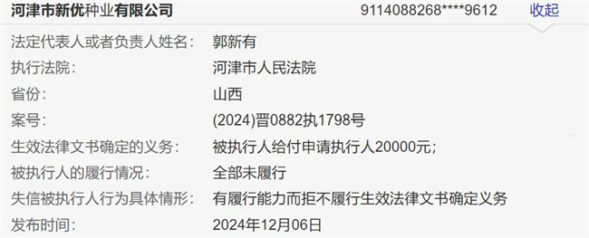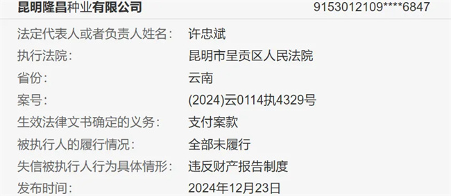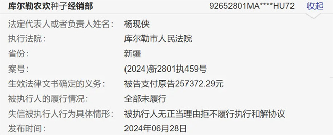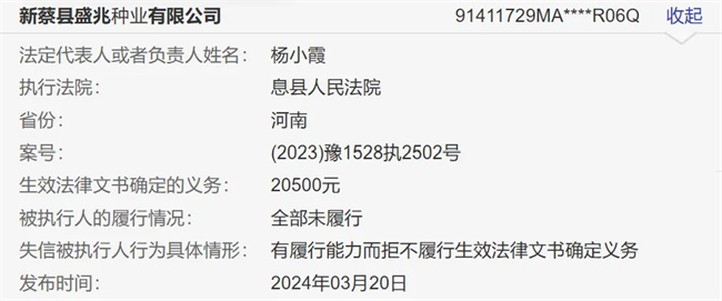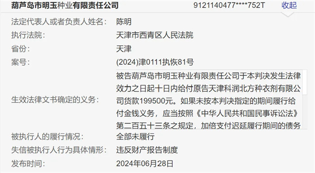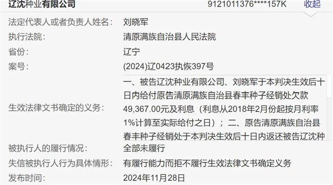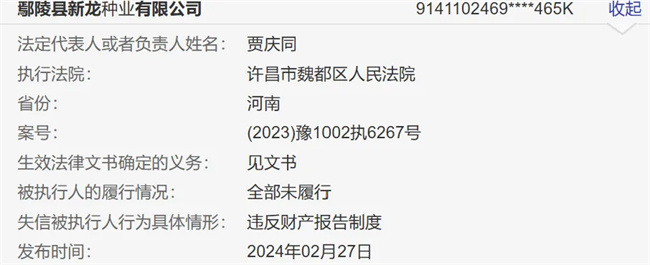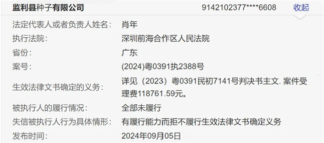 近日,农财君在全国失信被执行人名单查询页面上,以“种业”“种子”“种苗”为三个关键词,查询到2024年来失信的种业企业名单,共98家(不完全统计)。