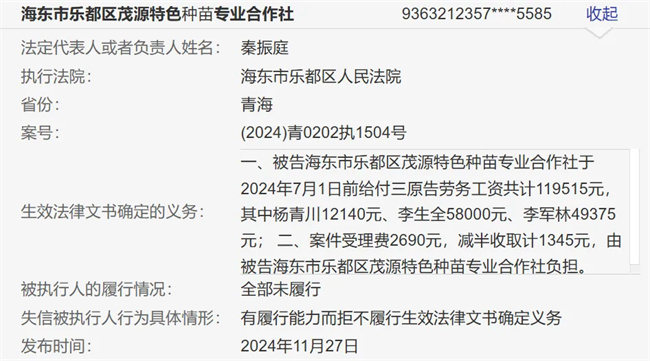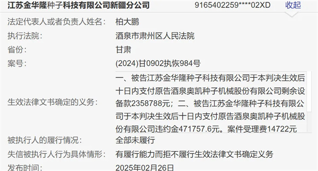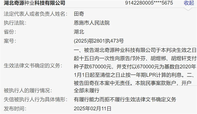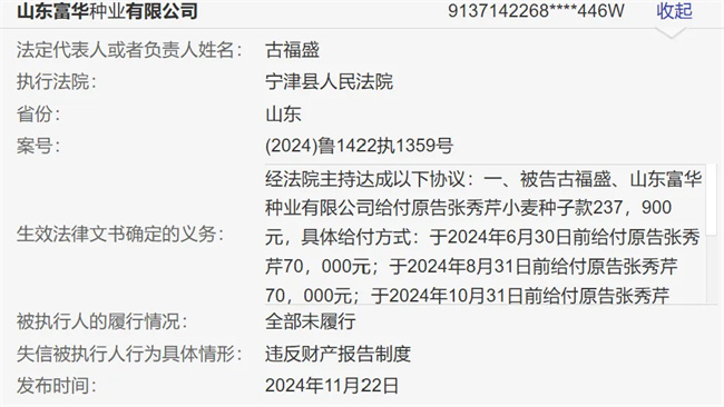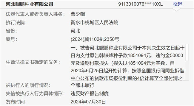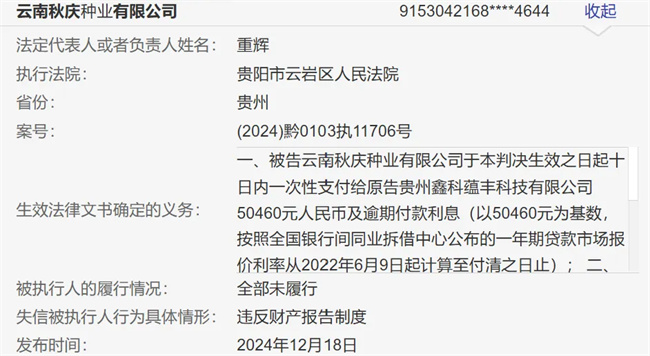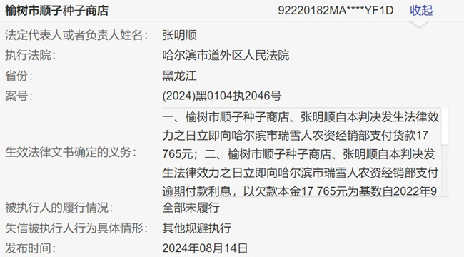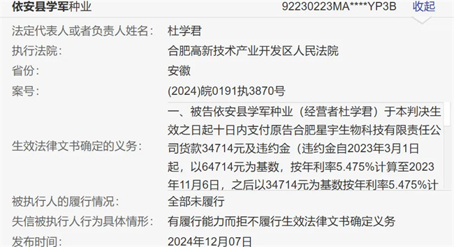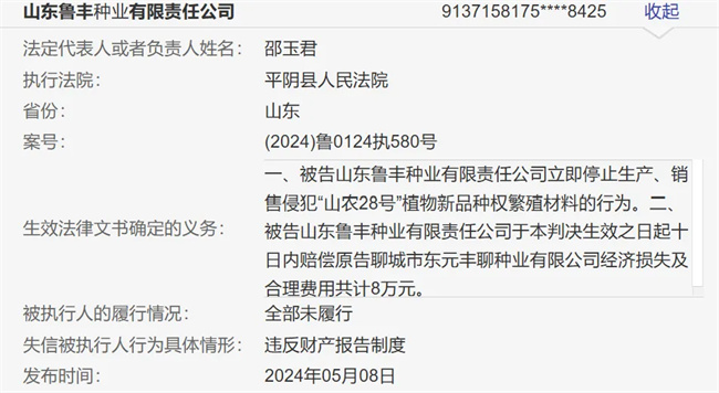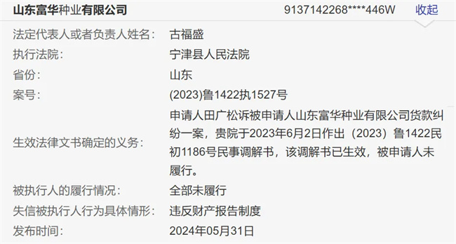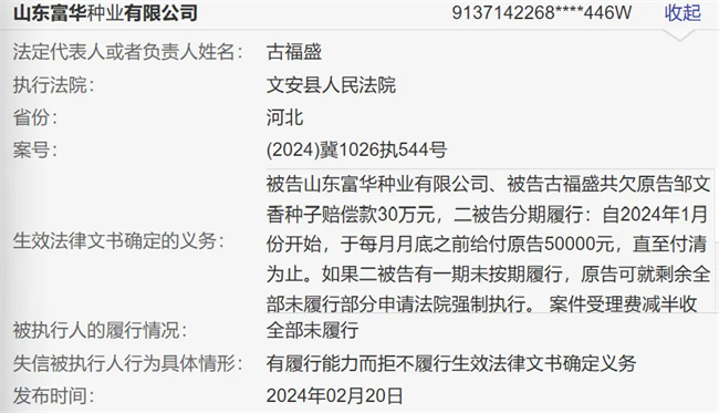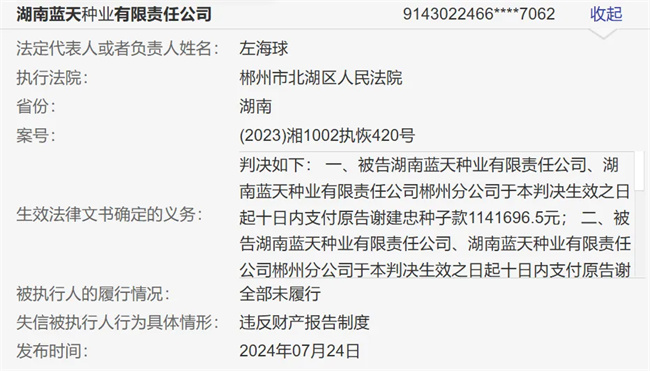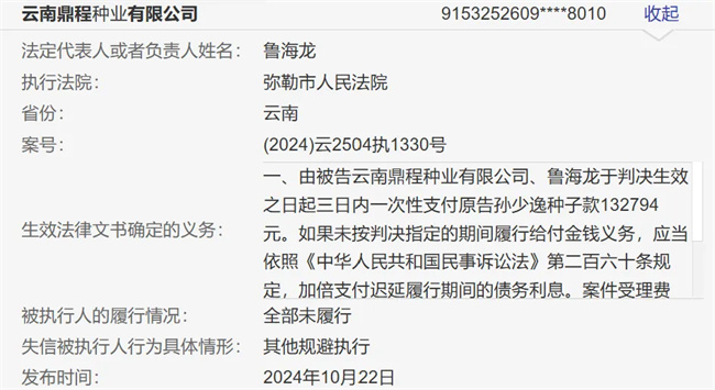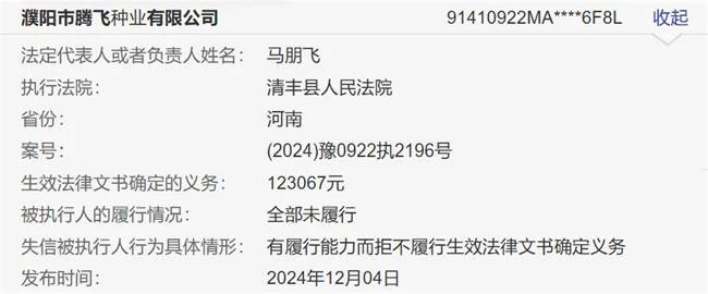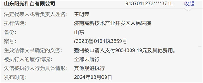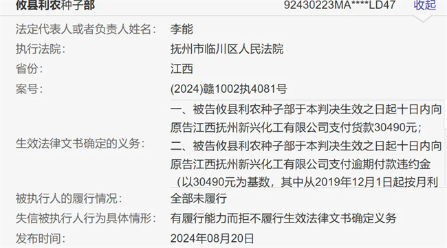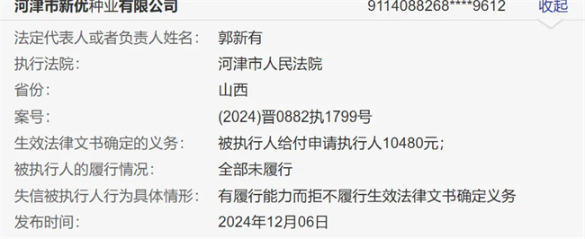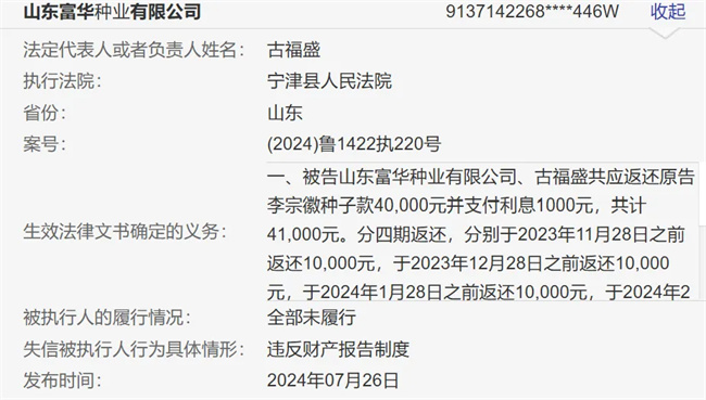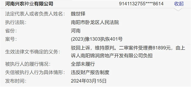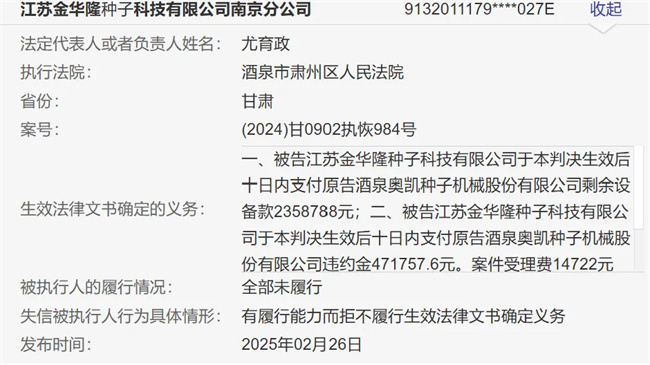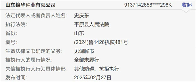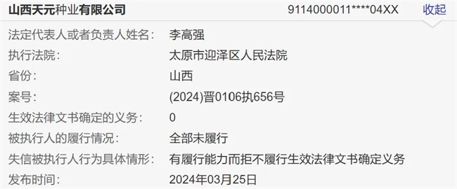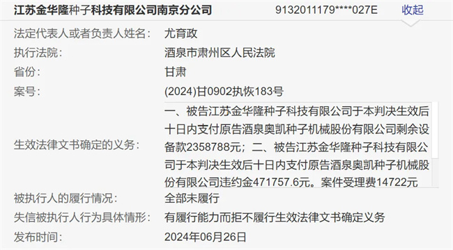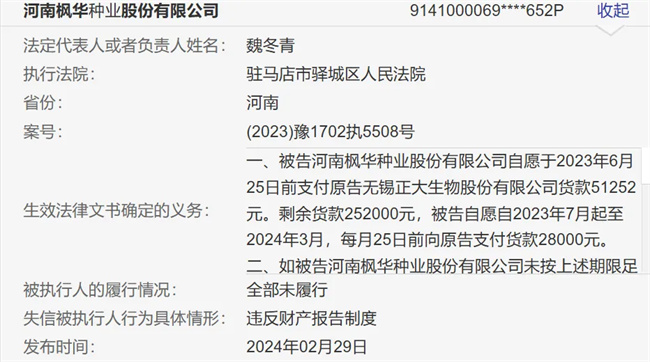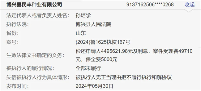 近日,农财君在全国失信被执行人名单查询页面上,以“种业”“种子”“种苗”为三个关键词,查询到2024年来失信的种业企业名单,共98家(不完全统计)。