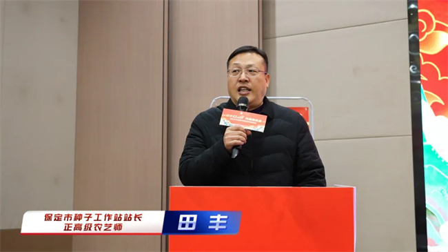 保定市种子工作站站长田丰致辞中对众人信农业在科技创新方面取得的显著成果给予了高度评价。他指出,种子经销商作为种子流通的关键环节,应紧跟市场需求,精准选择广适多抗的优质品种,并严格把控种子质量关。在此基础上,要将优良品种与优质服务相结合,充分挖掘优良品种的潜力,从而赢得广大客户的信赖与支持。他表示,作为农业服务部门,将全力做好服务,为种子经销商和农业从业者提供全方位的支持与保障,共同推动农业产业的高质量发展。